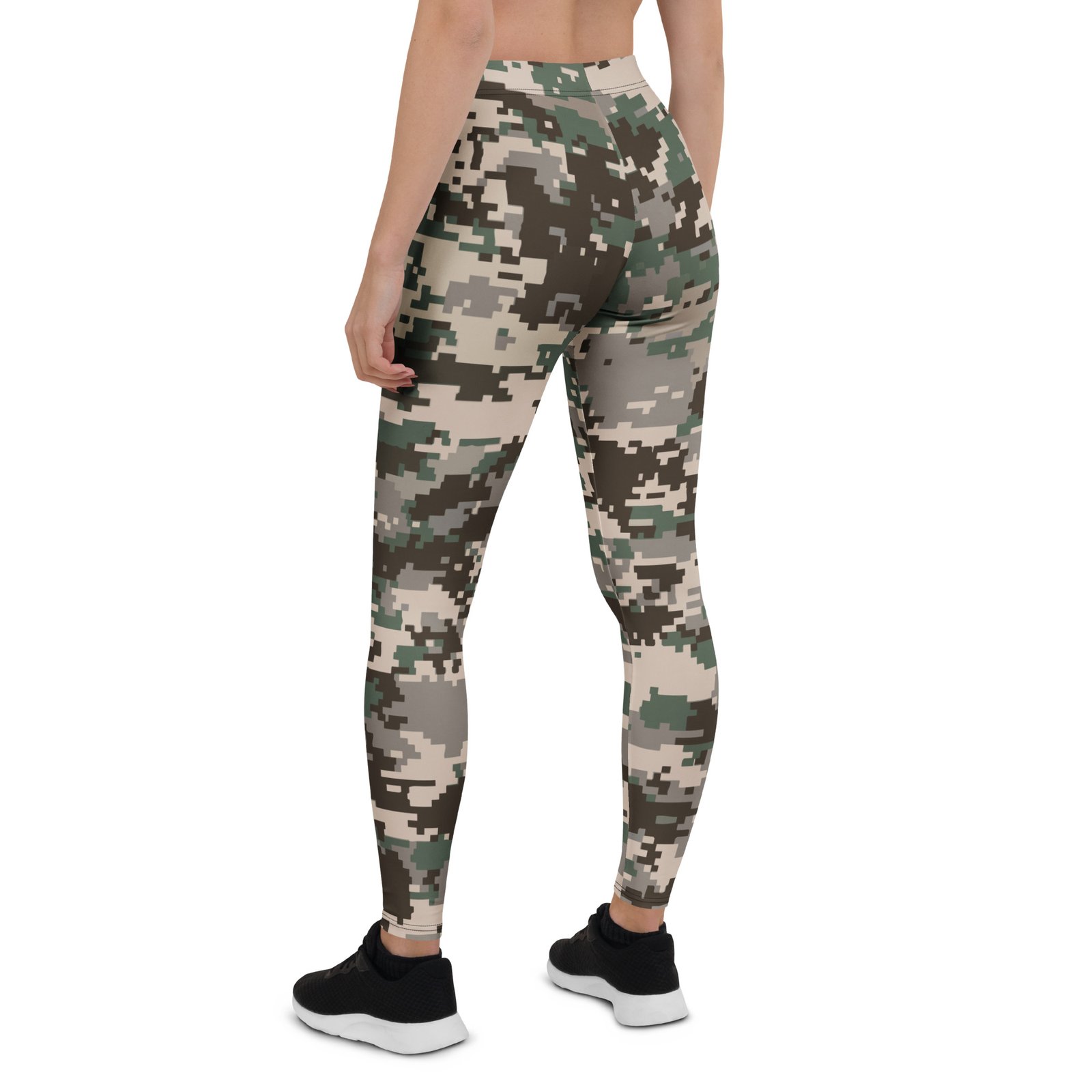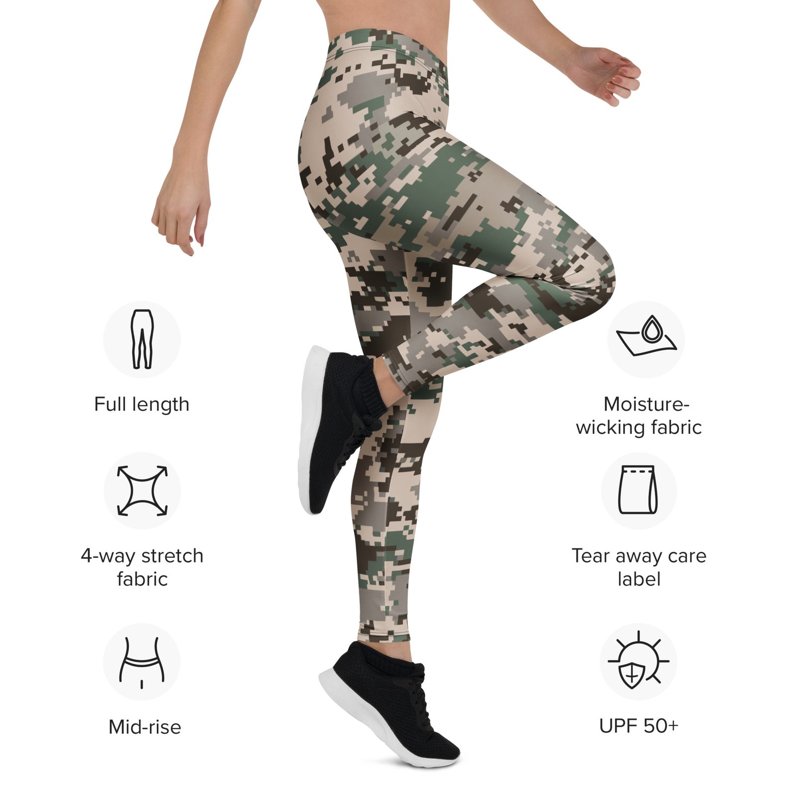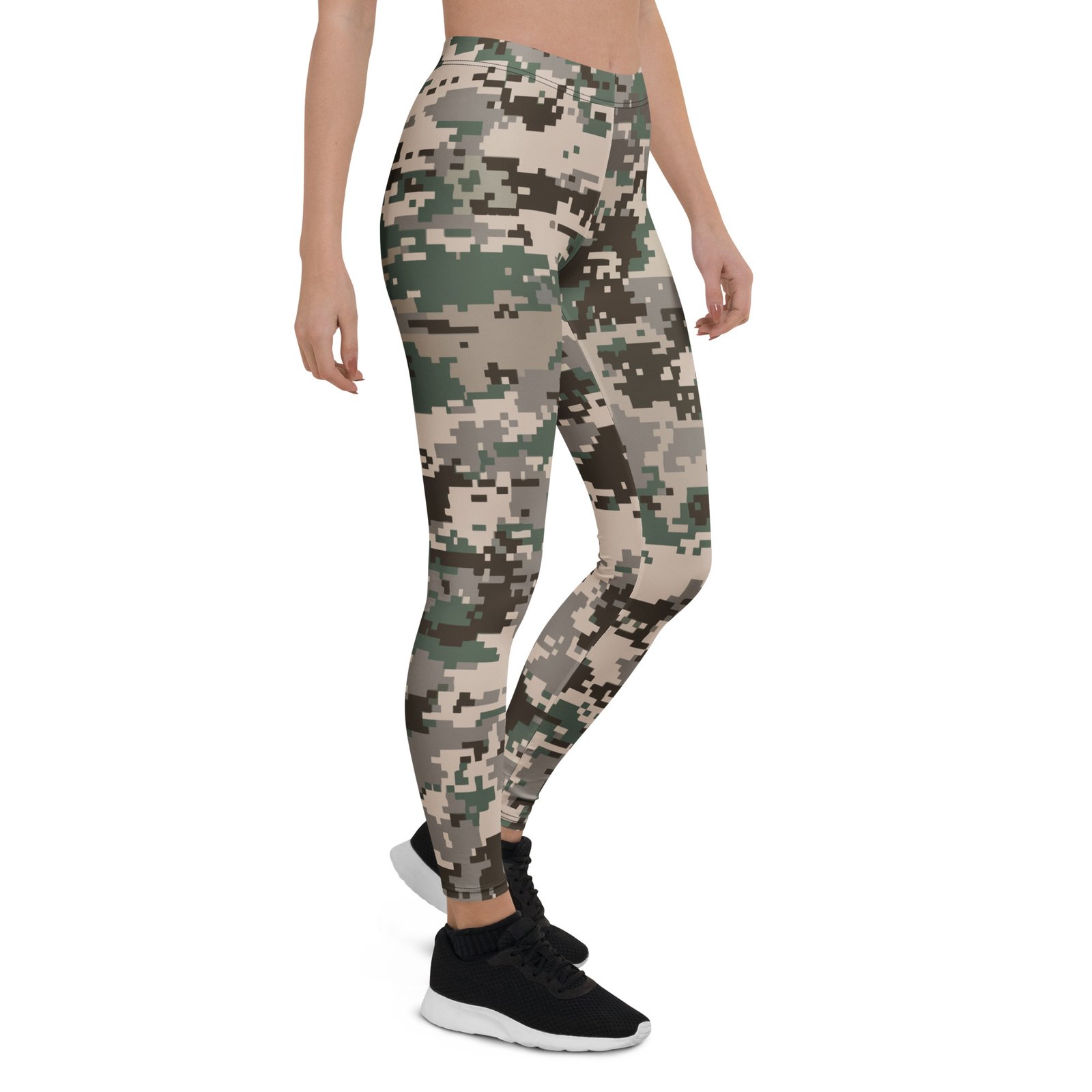 Upgrade your activewear wardrobe with these Green Gray Brown Camo Leggings, where style meets function seamlessly!