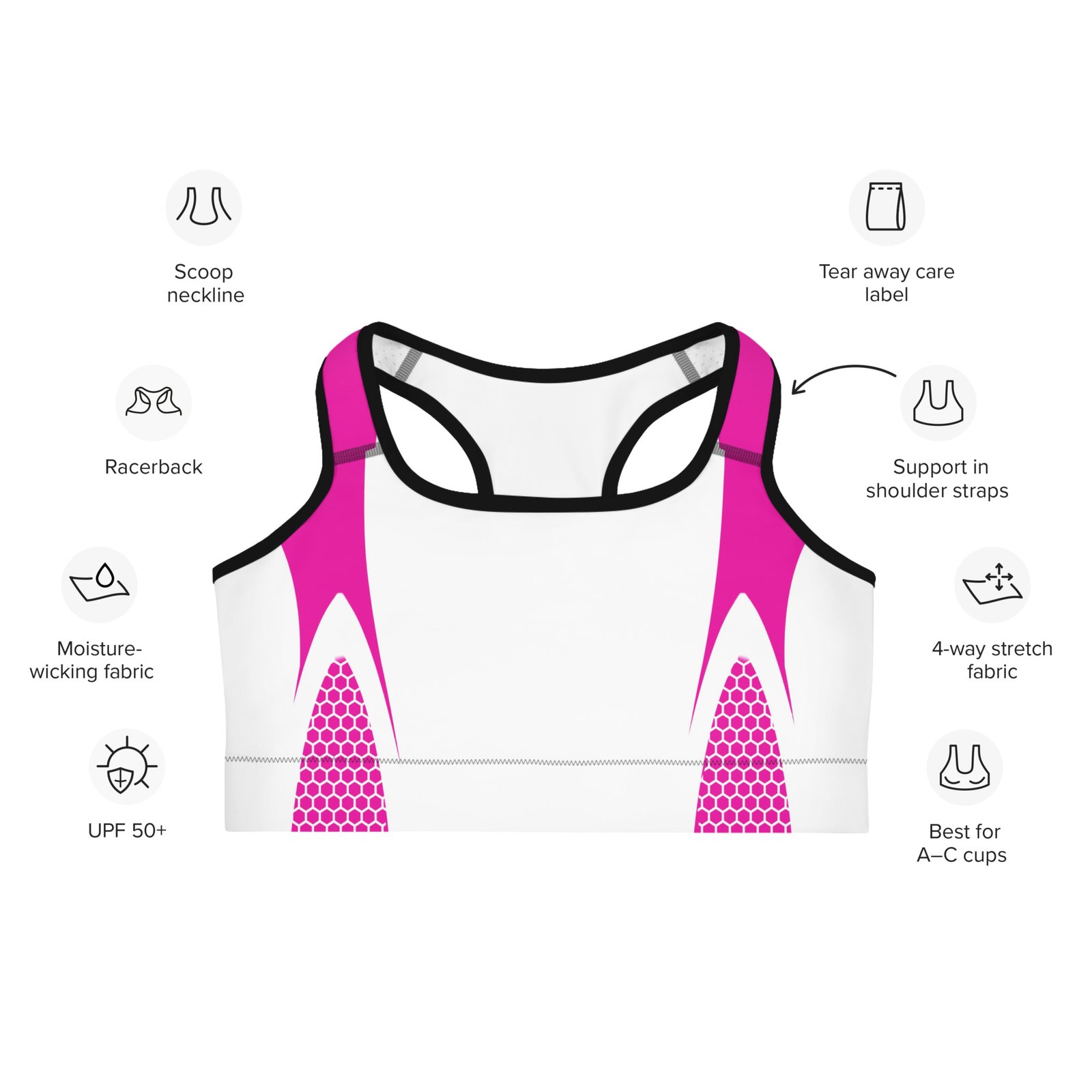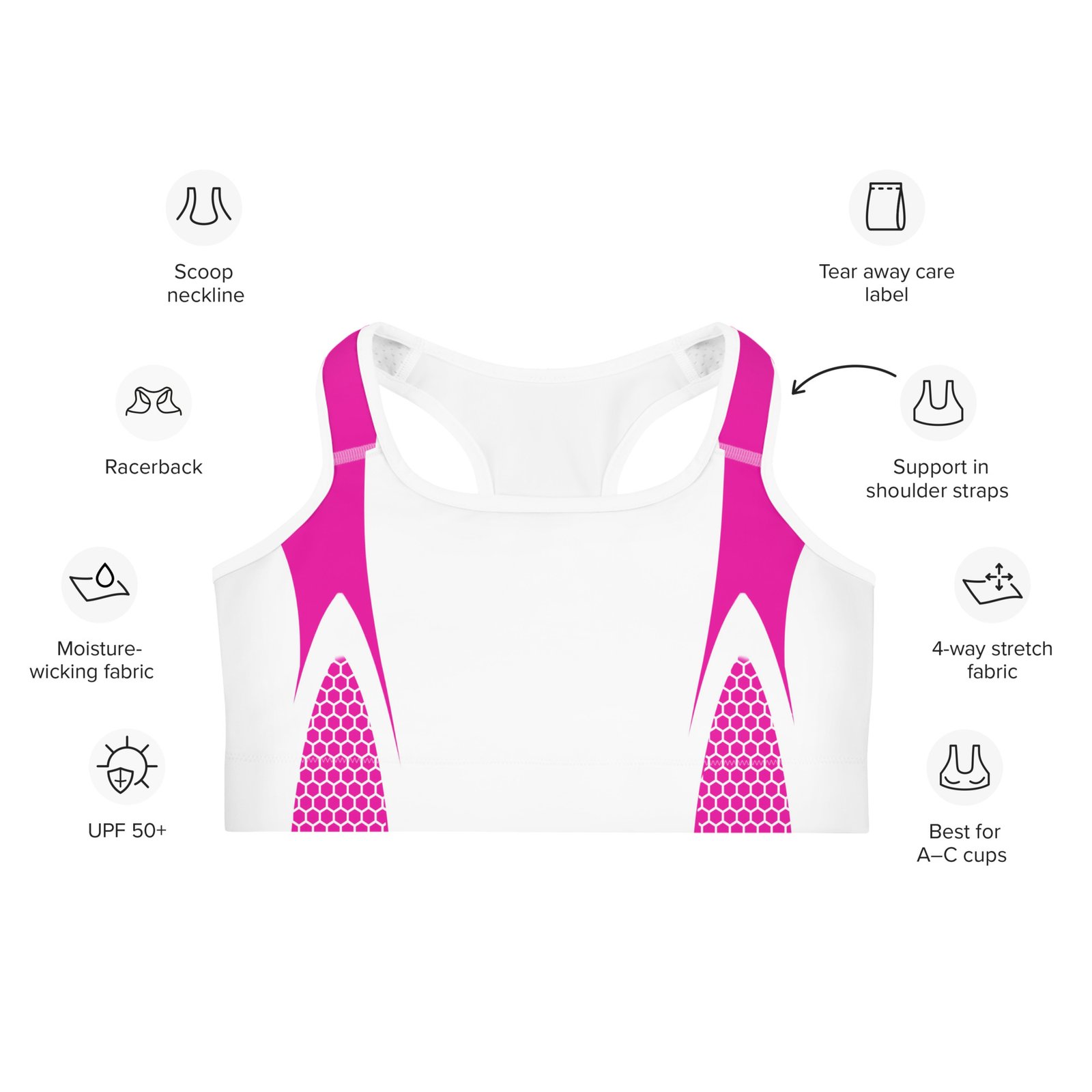 Pink-White-Honeycomb-Carbon-Sports Bra, designed for women who demand both style and functionality. Crafted from premium, moisture-wicking materials, this sports bra keeps you cool and dry even during intense workouts.