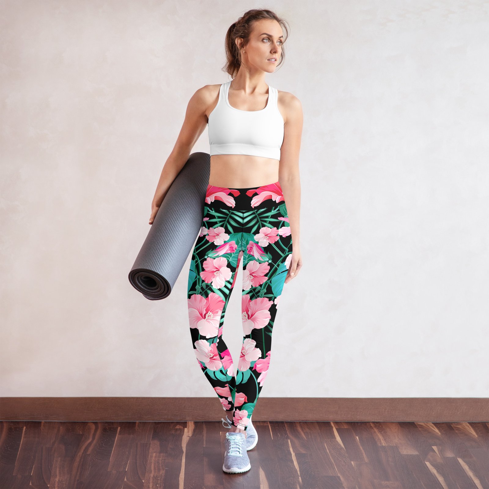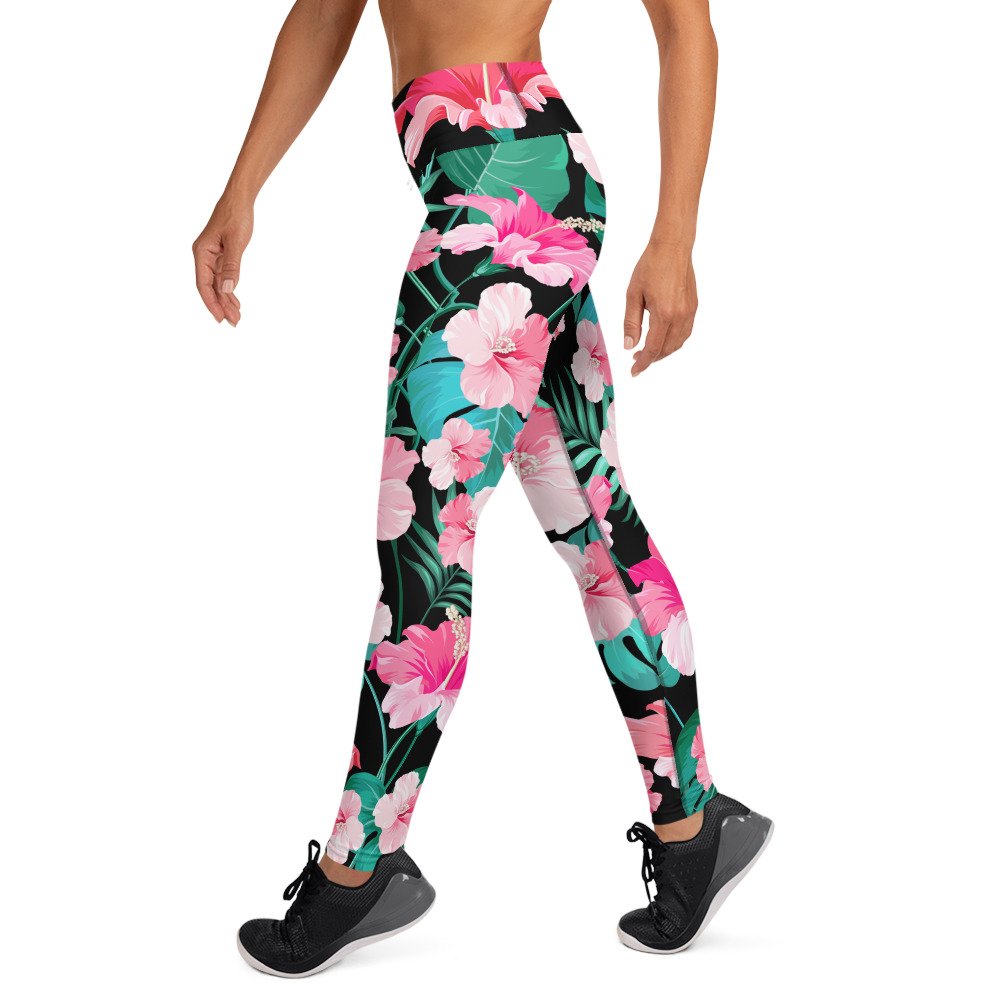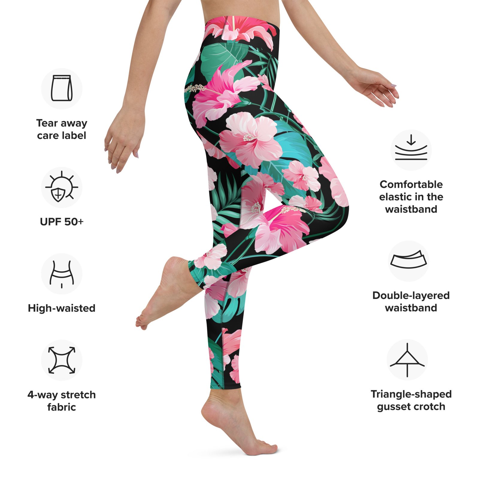 From intense gym sessions to casual hangouts, the Tropical Floral Black Yoga Pants fit in anywhere. Whether you’re working out or just running errands, they’ve got you covered. Shop now and step up your activewear game with style and comfort.